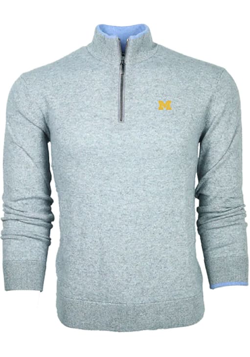 Embrace the warmth and showcase your Wolverines pride with our Michigan Wolverines Long Sleeve Qtr Zip Pullover. This Mens Grey Sebonack Long Sleeve Pullover offers a team logo embroidered on left chest for the perfect combination of comfort and style. Elevate your everyday look with this must-have Michigan Wolverines Long Sleeve Qtr Zip Pullover.