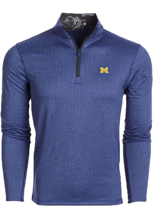 Embrace the warmth and showcase your Wolverines pride with our Michigan Wolverines Long Sleeve Qtr Zip Pullover. This Mens Blue Tate Herringbone Long Sleeve Pullover offers a team logo embroidered on left chest for the perfect combination of comfort and style. Elevate your everyday look with this must-have Michigan Wolverines Long Sleeve Qtr Zip Pullover.