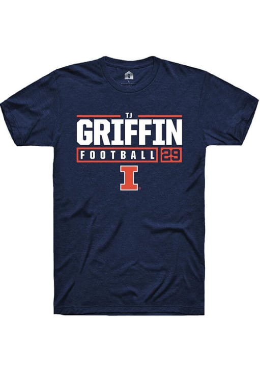 Timothy (TJ) Griffin Navy Blue Illinois Fighting Illini NIL Stacked Box Short Sleeve T Shirt