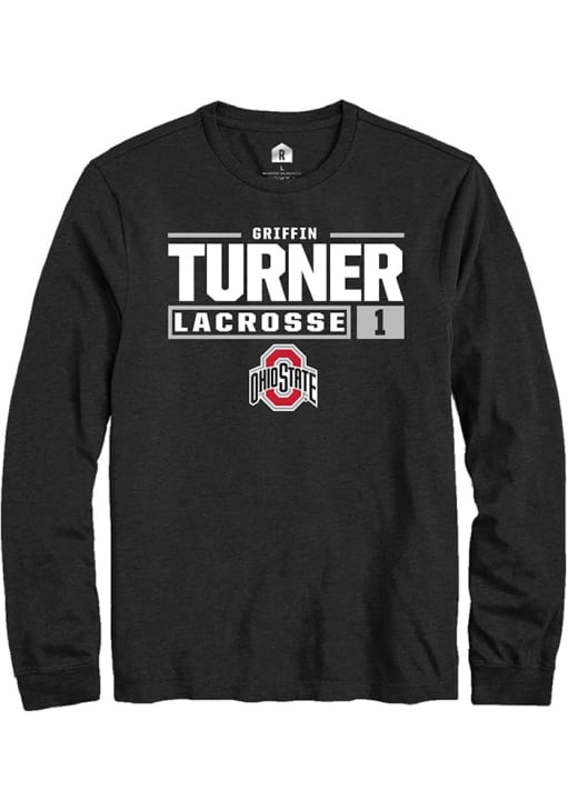 Griffin Turner Rally Mens Black Ohio State Buckeyes NIL Stacked Box Tee