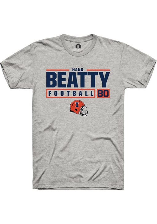 Hank Beatty Ash Illinois Fighting Illini NIL Stacked Box Short Sleeve T Shirt