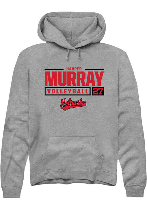 Harper Murray Rally Mens Graphite Nebraska Cornhuskers NIL Stacked Box Hooded Sweatshirt