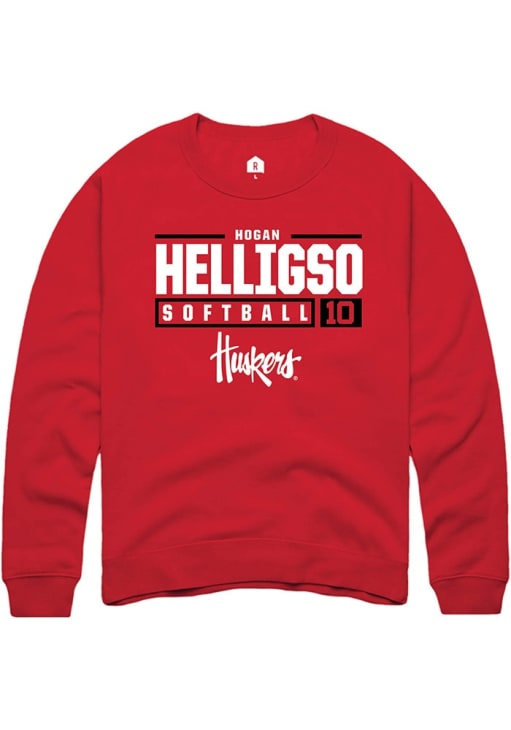 Hogan Helligso Rally Mens Red Nebraska Cornhuskers NIL Stacked Box Crew Sweatshirt