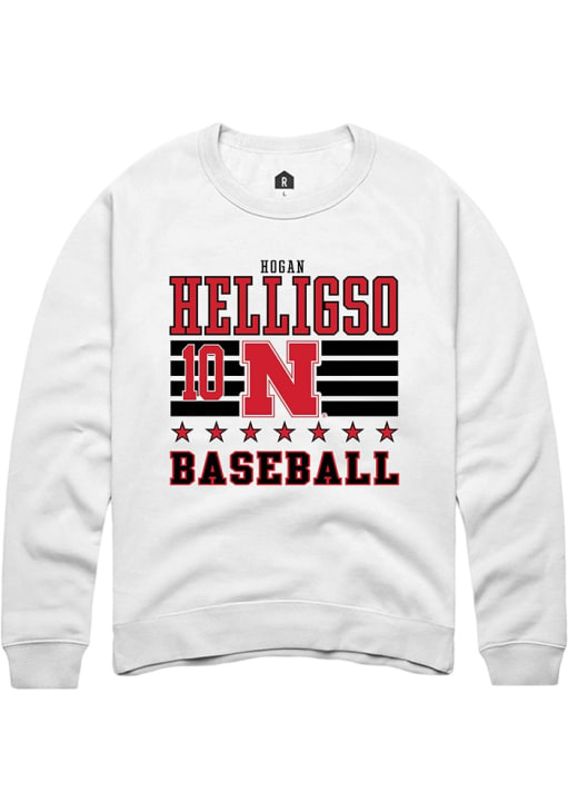 Hogan Helligso Rally Mens White Nebraska Cornhuskers NIL Striped Crew Sweatshirt