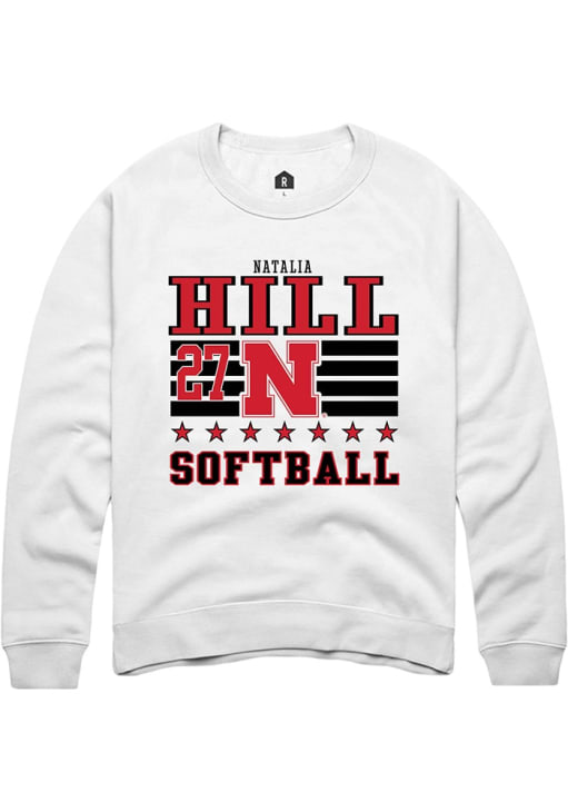 Natalia Hill Rally Mens White Nebraska Cornhuskers NIL Striped Crew Sweatshirt