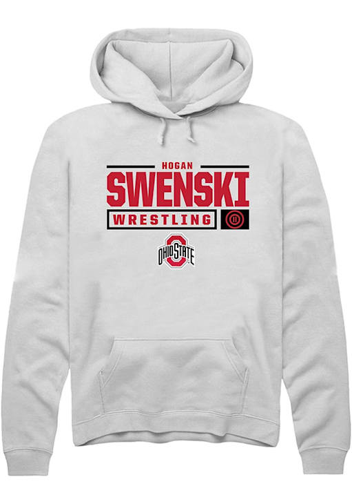 Hogan Swenski Rally Mens White Ohio State Buckeyes NIL Stacked Box Hooded Sweatshirt