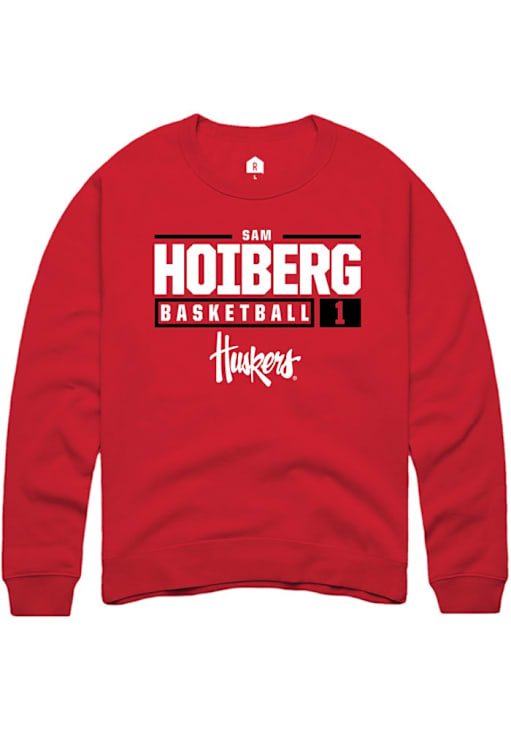 Samuel Hoiberg Rally Mens Red Nebraska Cornhuskers NIL Stacked Box Crew Sweatshirt