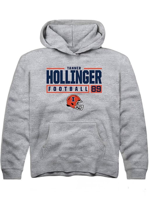 Go to gamedays in style in this Youth Grey Illinois Fighting Illini Rally NIL Stacked Box Hooded Sweatshirt! This Fighting Illini Hoodie features a custom graphic with player's name and number that will be sure to keep you warm and cozy.