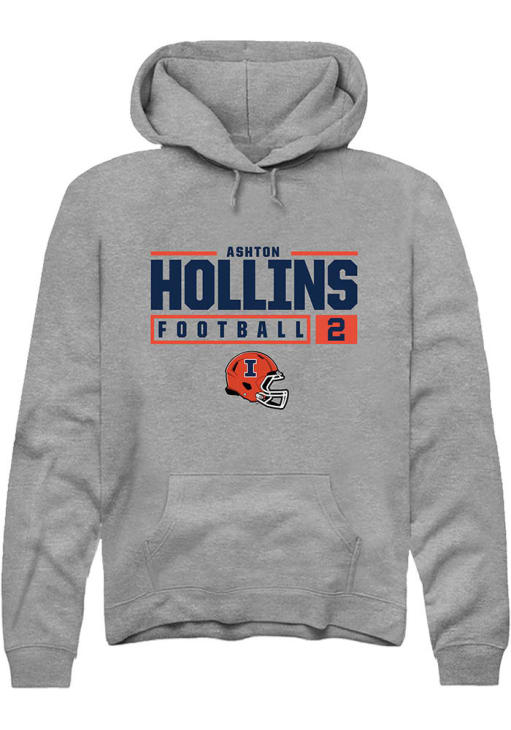 Ashton Hollins Rally Mens Graphite Illinois Fighting Illini NIL Stacked Box Hooded Sweatshirt
