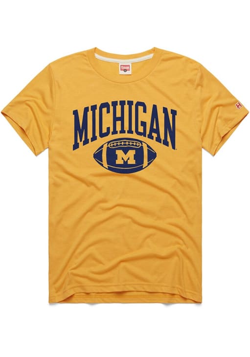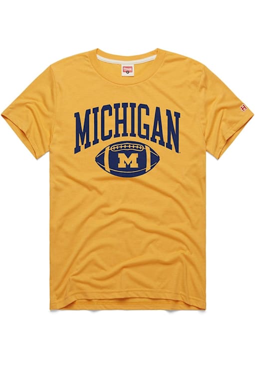 Support your Michigan Wolverines in this Gold Short Sleeve Fashion Tee! This Football Fashion T Shirt features a screen print team graphic across chest. Be ready to yell "Go Michigan" when you wear this Michigan Short Sleeve Fashion T Shirt in your favorite stadium or on the street.