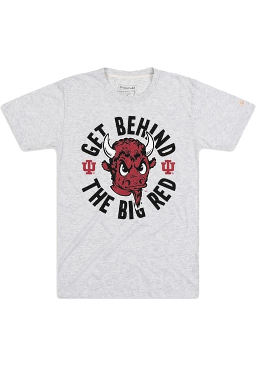 Support your Indiana Hoosiers in this Grey Short Sleeve Fashion Tee! This Get Behind the Big Red Fashion T Shirt features a screen print of vault logo with saying. Be ready to yell "Indiana, Our Indiana" when you wear this Indiana Short Sleeve Fashion T Shirt in your favorite stadium or on the street.