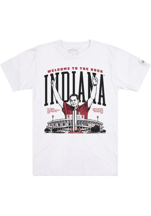 Display your team spirit with this remarkable Indiana Hoosiers Homefield White Welcome to the Rock Coach Cignetti Short Sleeve T Shirt! The Indiana Short Sleeve Tee showcases a screen print team graphic on front chest that truly sets it apart. Stand out from the crowd and proudly declare your allegiance to the Hoosiers with this exceptional White Indiana T Shirt. Indiana, Our Indiana!