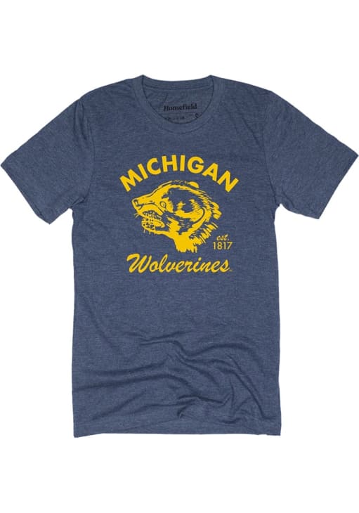 Support your Michigan Wolverines in this Blue Short Sleeve Fashion Tee! This Vintage Wolverine Fashion T Shirt features a screen print team name and logo on front chest. Be ready to yell "Go Michigan" when you wear this Michigan Short Sleeve Fashion T Shirt in your favorite stadium or on the street.