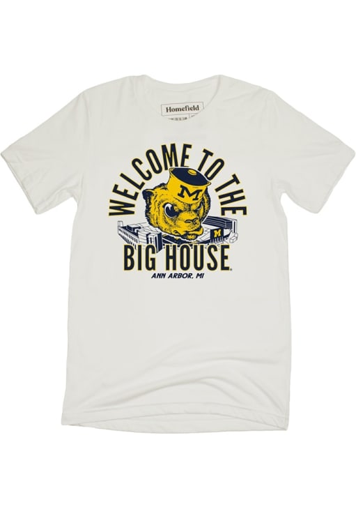 Support your Michigan Wolverines in this White Short Sleeve Fashion Tee! This Big House with Vault Logo Fashion T Shirt features a screen print stadium and vault logo on front chest. Be ready to yell "Go Michigan" when you wear this Michigan Short Sleeve Fashion T Shirt in your favorite stadium or on the street.