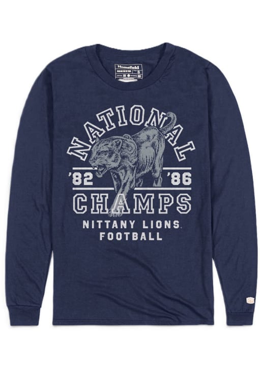 Show your Penn State Nittany Lions spirit in this Penn State Navy Blue T Shirt! This Penn State Football National Champions Long Sleeve T Shirt makes a great layer for cooler nights cheering on the Nittany Lions. Featuring a screen print team graphic on front chest, this Penn State Nittany Lions Long Sleeve Tee is an essential addition for every fan. Go Lions!