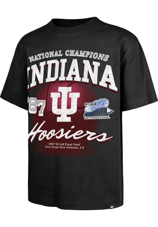 Support your Indiana Hoosiers in this Black Short Sleeve Fashion Tee! This 1987 Basketball National Champions Foundation Fashion T Shirt features a screen printed college name over team graphic over team name on front chest. Be ready to yell "Indiana, Our Indiana" when you wear this Indiana Short Sleeve Fashion T Shirt in your favorite stadium or on the street.