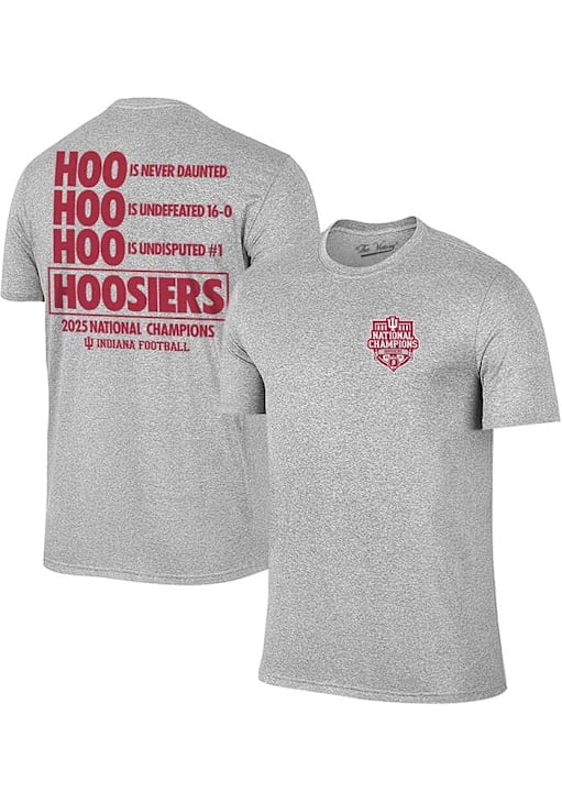 Display your team spirit with this remarkable Indiana Hoosiers The Victory Grey 2025 CFP National Champions HOO HOO HOO HOOSIERS Short Sleeve T Shirt! The Indiana Short Sleeve Tee showcases a screen print team graphic on left chest and across back that truly sets it apart. Stand out from the crowd and proudly declare your allegiance to the Hoosiers with this exceptional Grey Indiana T Shirt. Indiana, Our Indiana!