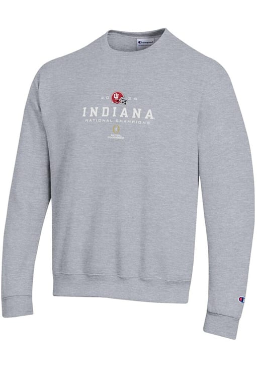 Mens Indiana Hoosiers Grey Champion 2025 Football National Champions Embroidered Crew Sweatshirt