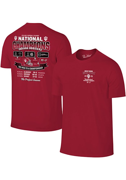 Display your team spirit with this remarkable Indiana Hoosiers The Victory Red 2025 CFP National Champions Path To A Championship Short Sleeve T Shirt! The Indiana Short Sleeve Tee showcases a screen print team graphic on left chest and across back that truly sets it apart. Stand out from the crowd and proudly declare your allegiance to the Hoosiers with this exceptional Red Indiana T Shirt. Indiana, Our Indiana!