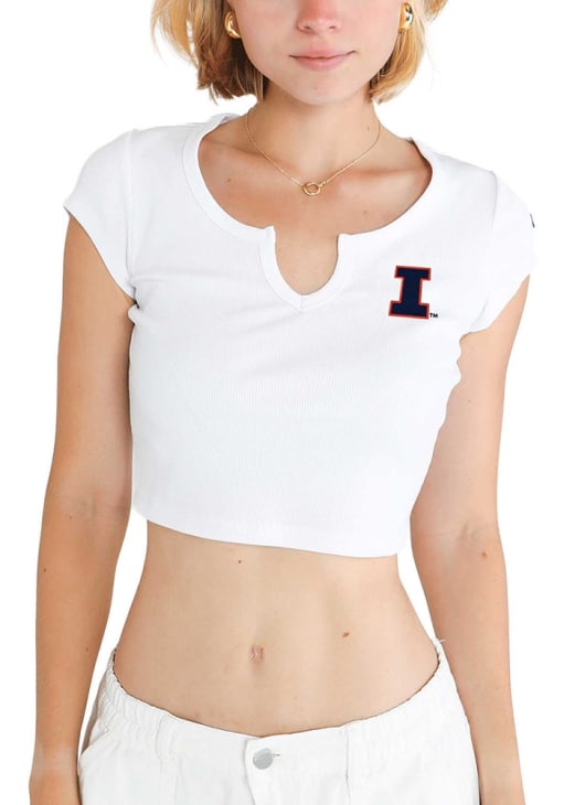 Display your team spirit with this remarkable Illinois Fighting Illini White Cali Crop Short Sleeve T-Shirt! The Illinois Short Sleeve Tee showcases a embroidered team logo on left chest that truly sets it apart. Stand out from the crowd and proudly declare your allegiance to the Fighting Illini with this exceptional White Illinois T-Shirt. Go, Illini, Go!