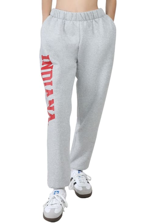Cozy up in these Indiana Hoosiers Womens Grey Classic Sweatpants! Whether you're lounging at home or cheering at the game, these Indiana Hoosiers Sweats are a great way to show your Hoosiers support in comfort. These Indiana Hoosiers Sweatpants feature a screen print team name down right leg.