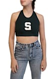 Elevate your tailgating style with this Michigan State Spartans Womens Tank Top. Stay fashionable and comfortable in the refreshing Green Britney Halter Sleeveless Shirt. Discover the enticing details of this MSU Tank Top, showcasing a screen print team logo on center chest that's sure to impress.