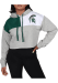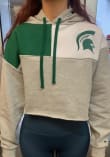 Embrace your Spartans pride and showcase your team spirit with confidence in this Michigan State Spartans Long Sleeve Hoodie! Stay warm and stylish with the MSU Womens Grey Colorblock Hooded Sweatshirt. Designed with embroidered team logo on right chest, this Spartans Long Sleeve Hoodie is a must-have for dedicated fans.