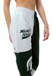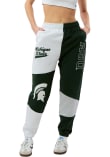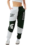 Cozy up in these Michigan State Spartans Womens Green Patchwork Sweatpants! Whether you're lounging at home or cheering at the game, these MSU Spartans Sweats are a great way to show your Spartans support in comfort. These Michigan State Spartans Sweatpants feature a team name and logo screen printed and embroidered on various panels of pants.