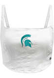 Elevate your tailgating style with this Michigan State Spartans Womens Tank Top. Stay fashionable and comfortable in the refreshing White Denim Corset Sleeveless Shirt. Discover the enticing details of this MSU Tank Top, showcasing a embroidered team logo on center front that's sure to impress.
