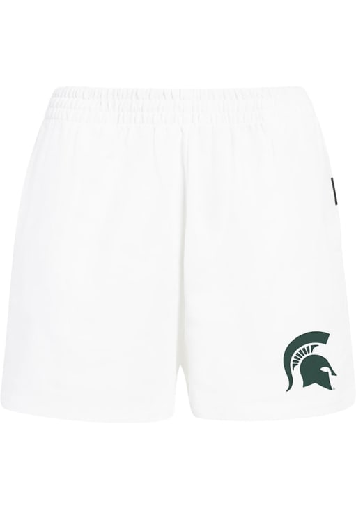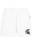 Take your workout to the next level in these Michigan State Spartans Womens White Fleece Track Shorts! These MSU Shorts are great for any Spartans fan who wants to show off their team spirit during their fitness routine. These Michigan State Spartans Shorts feature a embroidered team name on left hem.