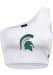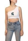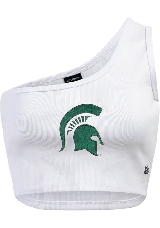 Elevate your tailgating style with this Michigan State Spartans Womens Tank Top. Stay fashionable and comfortable in the refreshing White Senior One Shoulder Sleeveless Shirt. Discover the enticing details of this MSU Tank Top, showcasing a embroidered team logo on center chest that's sure to impress.