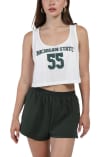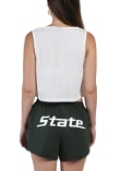 Elevate your tailgating style with this Michigan State Spartans Womens Tank Top. Stay fashionable and comfortable in the refreshing White Track Sleeveless Shirt. Discover the enticing details of this MSU Tank Top, showcasing a screen print team name on center chest that's sure to impress.