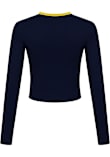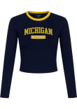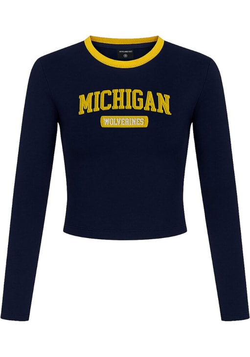 Show your Michigan Wolverines spirit in this Michigan Blue T-Shirt! This Michigan Baby Tee Long Sleeve T-Shirt makes a great layer for cooler nights cheering on the Wolverines. Featuring a embroidered team name on center chest, this Michigan Wolverines Long Sleeve LS Tee is an essential addition for every fan. Go Michigan!