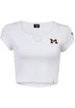 Display your team spirit with this remarkable Michigan Wolverines White Cali Crop Short Sleeve T-Shirt! The Michigan Short Sleeve Tee showcases a embroidered team logo on left chest that truly sets it apart. Stand out from the crowd and proudly declare your allegiance to the Wolverines with this exceptional White Michigan T-Shirt. Go Michigan!