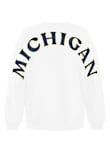 Gear up for the ultimate game day experience with this remarkable Michigan WolverinesWomens White Oversized Crew Sweatshirt! Designed with the true fan in mind, this Wolverines Long Sleeve Sweatshirt features a embroidered team logo and screenprint team name on left chest with screenprint team name on center back. Stay warm and comfortable with this Womens Michigan Wolverines Crew Sweatshirt.