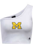 Elevate your tailgating style with this Michigan Wolverines Womens Tank Top. Stay fashionable and comfortable in the refreshing White Senior Cropped One Shoulder Sleeveless Shirt. Discover the enticing details of this Michigan Tank Top, showcasing a center chest embriodery team logo that's sure to impress.