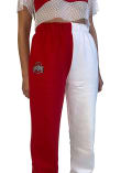 Cozy up in these Ohio State Buckeyes Womens White Two Tone Colorblock Sweatpants! Whether you're lounging at home or cheering at the game, these The Ohio State University Buckeyes Sweats are a great way to show your Buckeyes support in comfort. These Ohio State Buckeyes Sweatpants feature a screen print team logo at right leg.