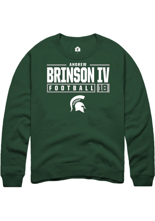 Andrew Brinson IV Rally Mens Green Michigan State Spartans NIL Stacked Box Crew Sweatshirt