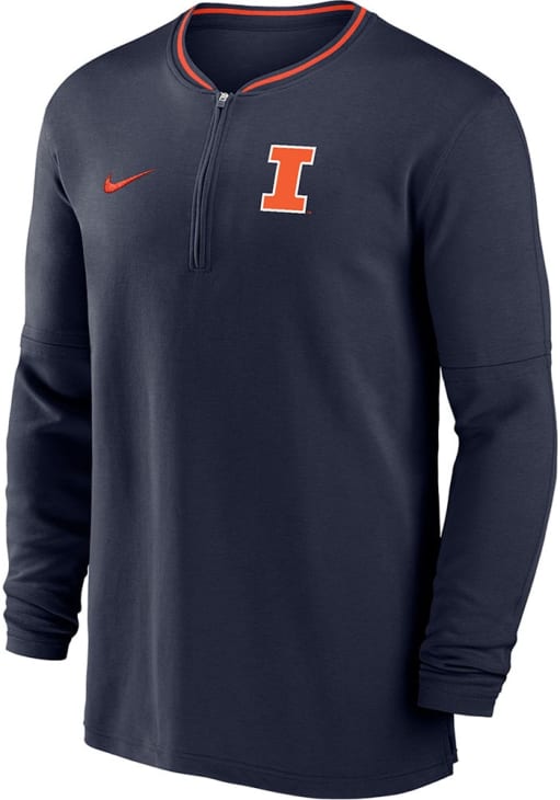 Embrace the warmth and showcase your Fighting Illini pride with our Illinois Fighting Illini Long Sleeve Qtr Zip Pullover. This Mens Navy Blue Sideline DriFIT Half Zip Gameday Long Sleeve Pullover offers a embroidered team graphic on left chest for the perfect combination of comfort and style. Elevate your everyday look with this must-have Illinois Fighting Illini Long Sleeve Qtr Zip Pullover.