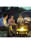 - Safety ring surrounding fire pit also functions as footrest and handle