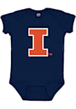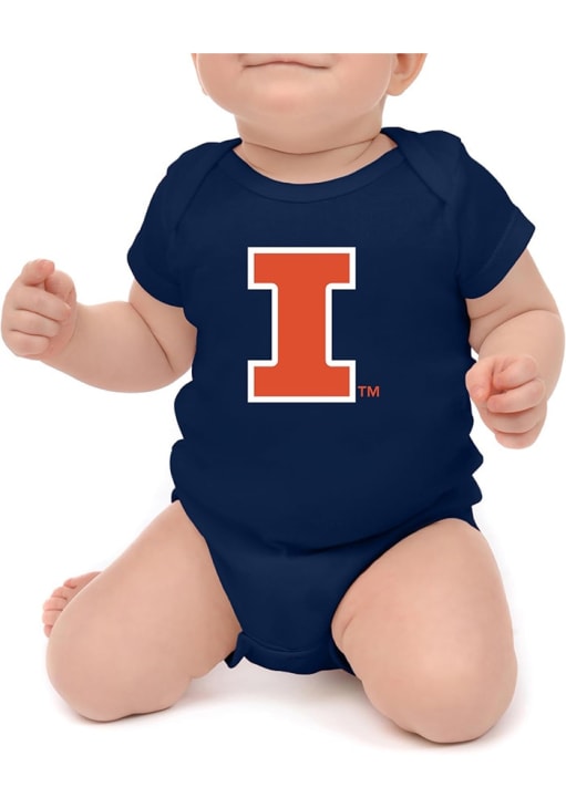 Product Details Product Details Snap closureLap shouldersScreen print graphicPerfect for any young sports fan!100% POLYESTERImport, Domestic Officially Licensed Your little Fighting Illini fan will look adorable in this Baby Navy Blue Illinois Fighting Illini Primary Logo One Piece! This Illinois Fighting Illini Romper features a screen print team graphic.