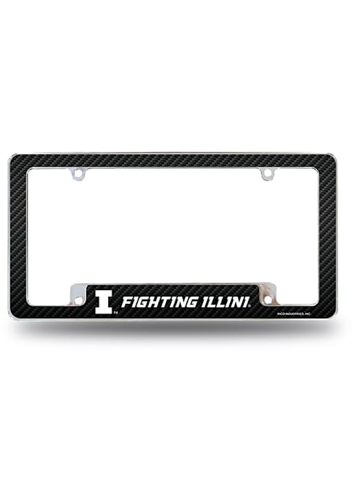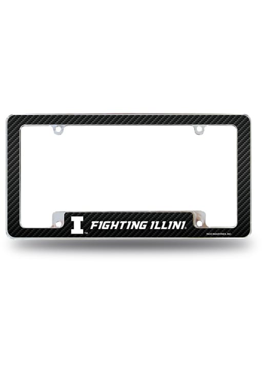Black Illinois Fighting Illini Carbon Fiber All Over Chrome License Plate Frame