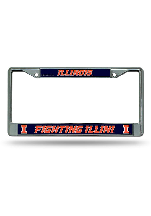 This Fighting Illini License Plate Holder features a team logo with team colors.