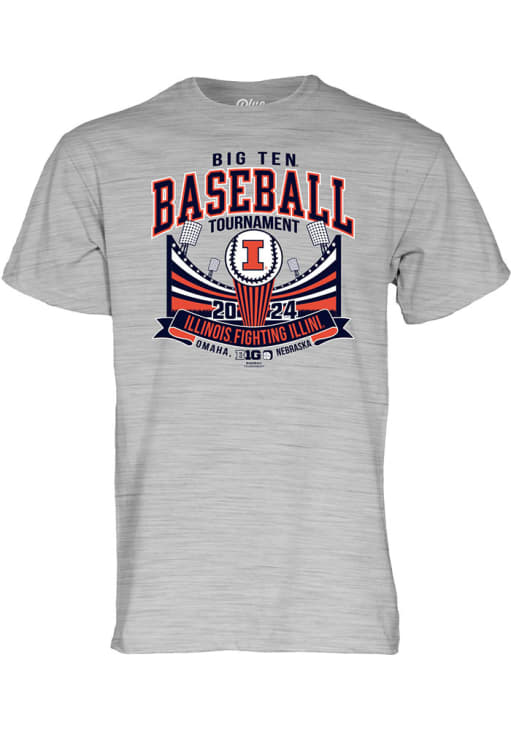 Display your team spirit with this remarkable Illinois Fighting Illini Blue 84 Grey 2024 Big Ten Baseball Tournament Short Sleeve T Shirt! The Illinois Short Sleeve Tee showcases a team graphic on front and back that truly sets it apart. Stand out from the crowd and proudly declare your allegiance to the Fighting Illini with this exceptional Grey Illinois T Shirt. Go, Illini, Go!