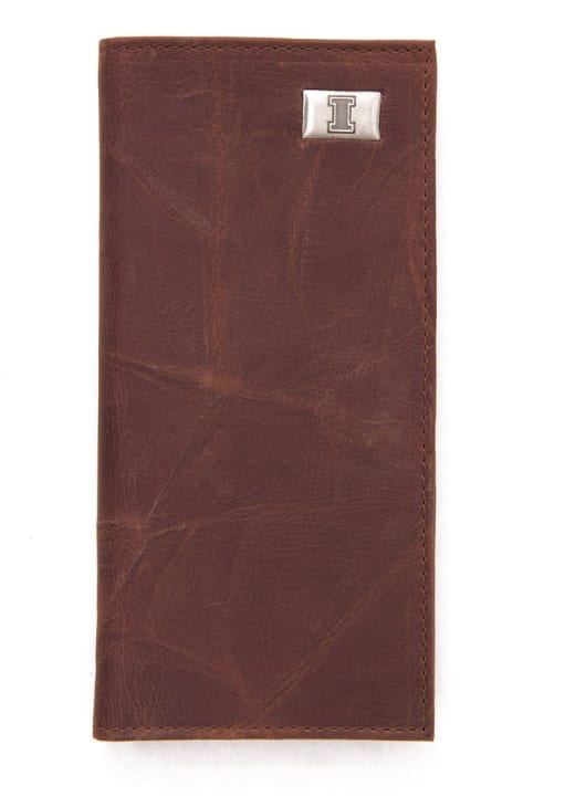 Product Details Product Details Distressed LeatherSingle windowed ID pocketMeasures approximately 3.5" x 7" when closedMetal concho6 Credit card slots Officially Licensed Purchase this Illinois Fighting Illini Leather Secretary Mens Bifold Wallet and showcase your Fighting Illini pride on the go! This Illinois Fighting Illini Mens features a team logo.