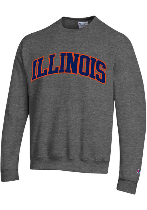 Mens Illinois Fighting Illini Charcoal Champion Arch Name Twill Crew Sweatshirt