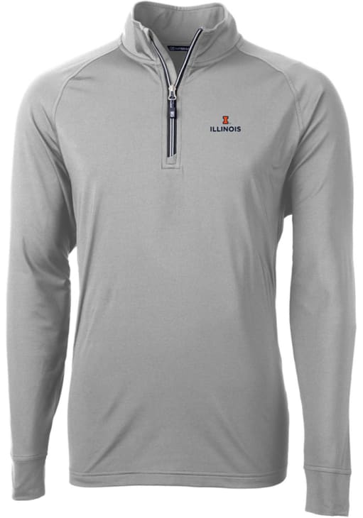 Mens Illinois Fighting Illini Grey Cutter and Buck Adapt Eco Knit Stretch Qtr Zip Pullover