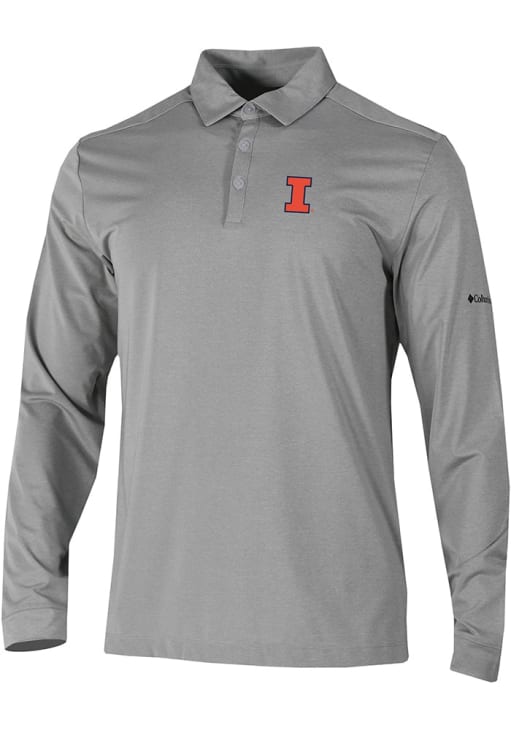 Make a bold statement in this Illinois Fighting Illini Columbia Mens Grey Heat Seal Omni Wick Pin High Long Sleeve Long Sleeve Polo! This Polo features a team logo, making this Mens Long Sleeve Polo Shirt perfect for any Illinois fan who wants to display their spirit in any setting.