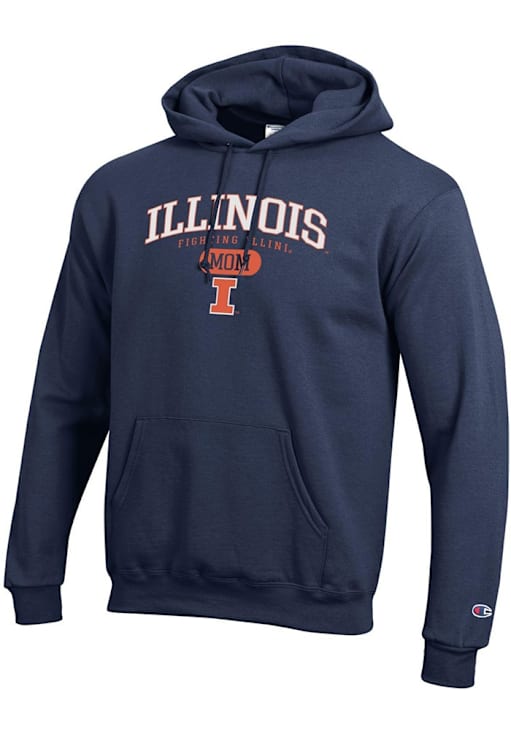 Mens Illinois Fighting Illini Navy Blue Champion Pill Box Mom Powerblend Hooded Sweatshirt