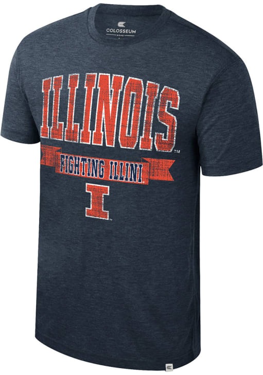 Support your Illinois Fighting Illini in this Navy Blue Short Sleeve Fashion Tee! This Business Arrangement Fashion T Shirt features a distressed softhand screenprint school name, team name banner and primary logo across front. Be ready to yell "Go, Illini, Go" when you wear this Illinois Short Sleeve Fashion T Shirt in your favorite stadium or on the street.